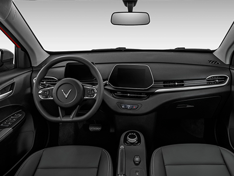 Ghế ngồi được bọc giả da cao cấp, mang lại cảm giác êm ái và dễ dàng vệ sinh – yếu tố quan trọng đối với xe vận tải thường xuyên chở nhiều hành khách. Bảng điều khiển trung tâm được thiết kế gọn gàng, tập trung vào màn hình cảm ứng 10,4 inch (dự kiến dựa trên VF 5), tích hợp hệ thống giải trí và các tính năng điều khiển thông minh. Vô-lăng bọc da, tích hợp các phím chức năng, giúp tài xế dễ dàng thao tác mà không cần rời tay.